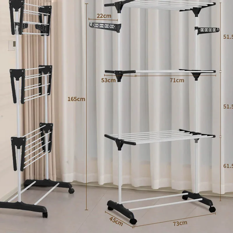 Con el TENDEDERO MOVIL DE 4 NIVELES de acero inoxidable resistente con ruedas, soporte plegable para secado de ropa para salones y hoteles